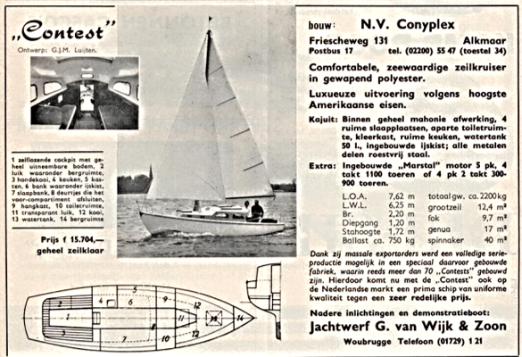 The first sailing cruiser build by Conyplex is the Contest 25. Provided with the dutch tulip; also the pride of a dutch national product.